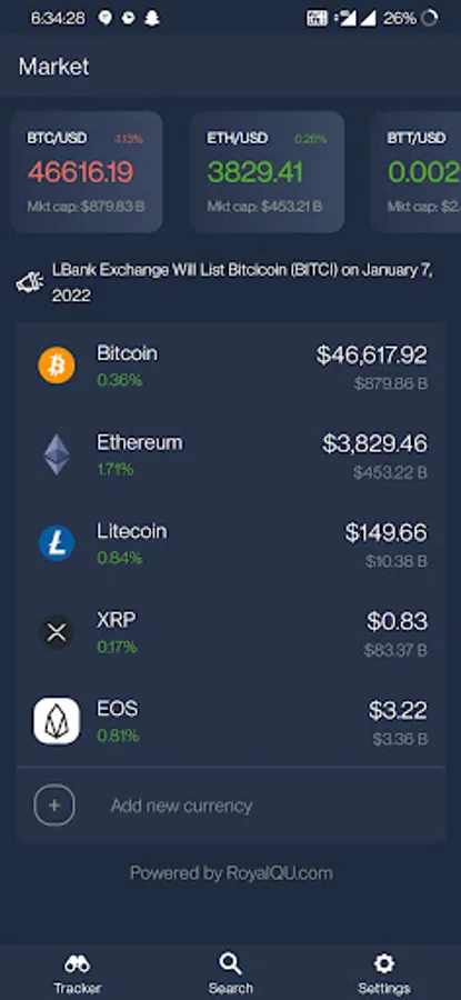 Royal Qu makes it easy to monitor 1500+ cryptocurrencies