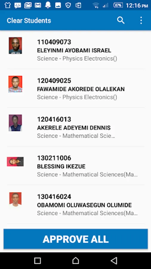 This Mobile App is for clearing graduating students in Adekunle Ajasin University, Akungba-Akoko. The App is meant to reduce student stress. Its sole purpose is to allow easy access for Staff to clear graduating students on-the-go. To reduce delay in clearing students by offering timely and automated notification. The App is light-weight, easy to download and install. It is user-friendly and offers seamless navigation. It is fast and secured.