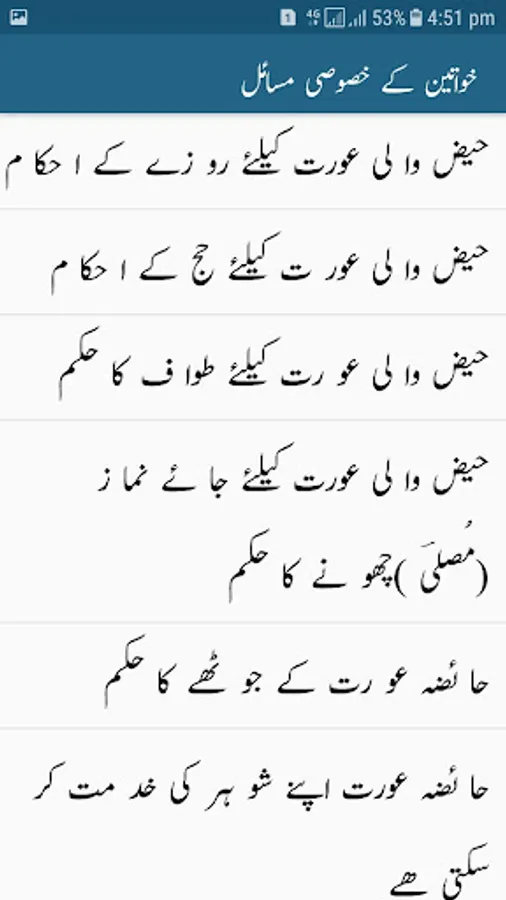 Khawateen ky Khasoosi Masail is an Islamic application that is a gift to Muslims womens for their personal body issue as per Islamic Law.