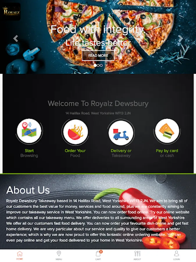 We're also available for ordering on https://royalzdewsbury.co.uk/storemenu and also on https://kuick.com/order/royalz-dewsbury