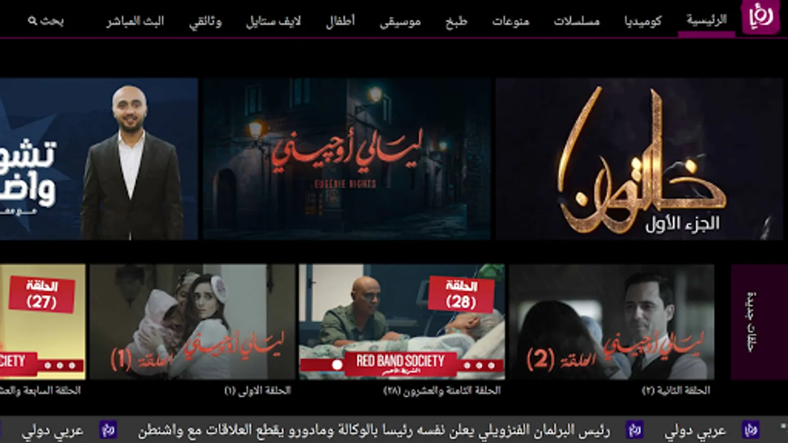 Download Roya TV application now and enjoy free programs, shows, series, and videos streaming.