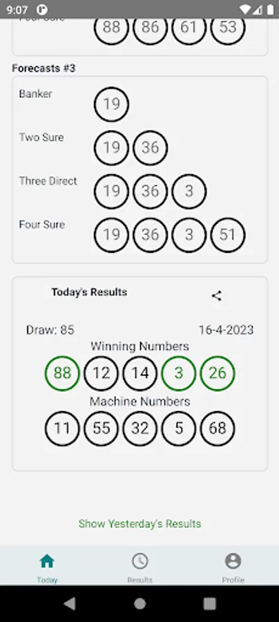 Get Banker predictions calculated with working plans and other formulas delivered to your phone daily and view past results with ease.