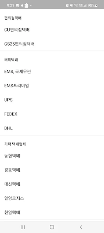 - Nonghyup Courier, Kyungdong Parcel, Daishin Courier, Ilyang Logis, Cheonil Courier: Other Couriers