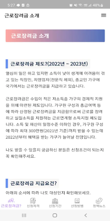 This is a work-related income support policy supported by the government every year according to the composition of household members, total salary, and assets.