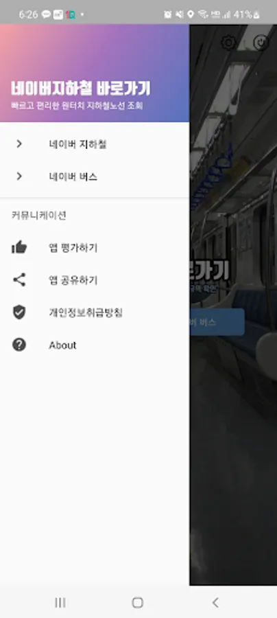 Conveniently check subway information for metropolitan areas, Busan, Daegu, Gwangju, and Daejeon.