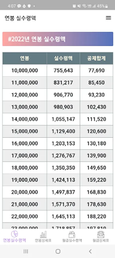 The 'Salary / Real Wage Amount' app is based on your annual salary and monthly salary.