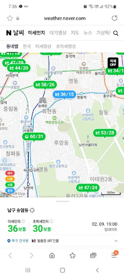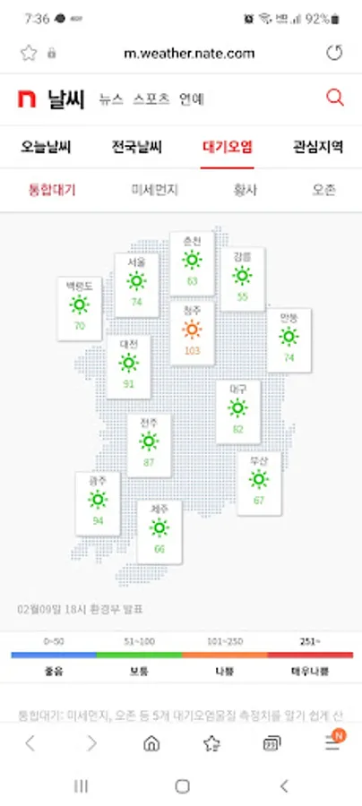 Real-time air pollution information, real-time atmospheric information such as fine dust, ozone, and yellow dust