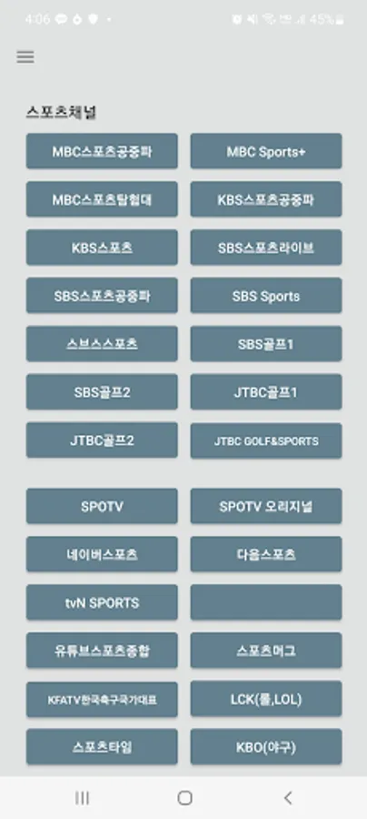 SBS Sports, SBS Golf, FishingTV, JTBC Golf, K Baduk, Korea Fishing Channel, SPOTV1, SPOTV2