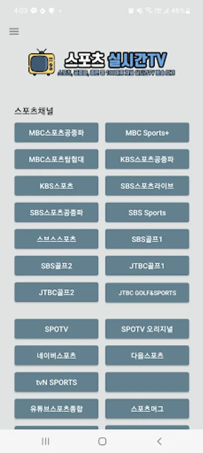 SBS Sports, SBS Golf, FishingTV, JTBC Golf, K Baduk, Korea Fishing Channel, SPOTV1, SPOTV2