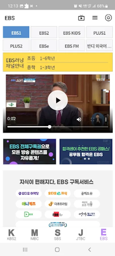 EBS1, EBS2, EBS Kids, EBS Plus 1, EBS Plus 2, EBSe (English), EBS Elementary School, EBS Middle School