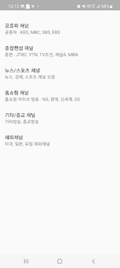 Naver TV, Korea Vocational Broadcasting, Korea Agricultural Broadcasting, Welfare TV, Defense TV, Korea Election Broadcasting