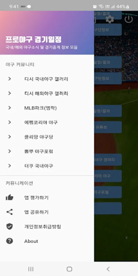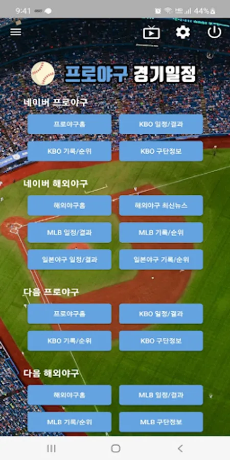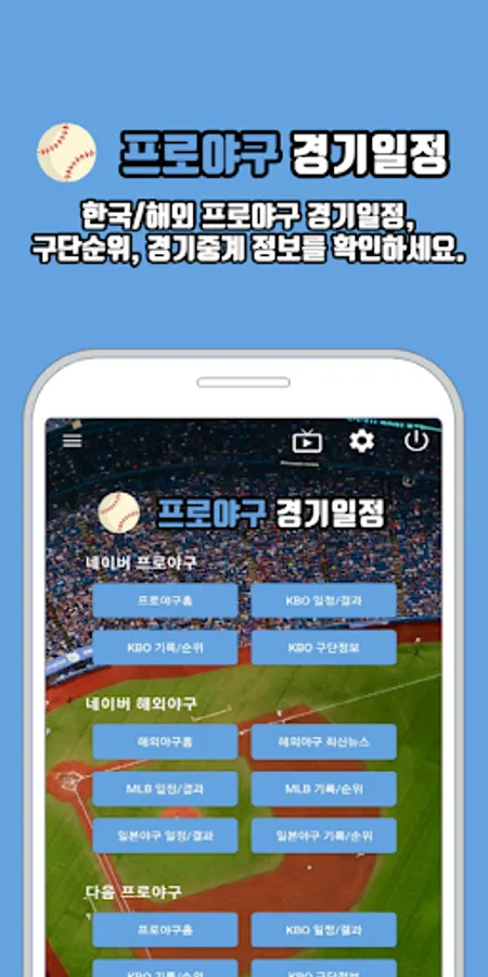 Provides Korean KBO professional baseball game schedule and real-time game relay links.