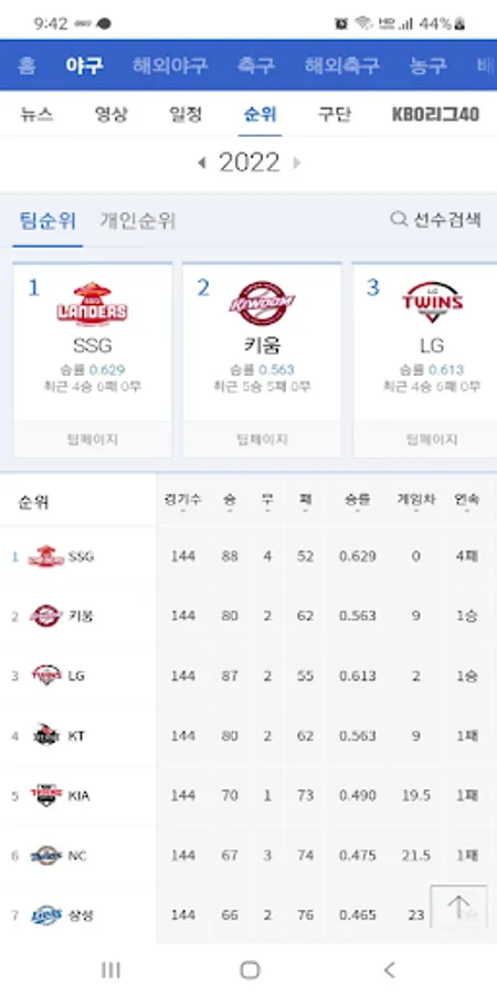 Check the Korean professional baseball game schedule, team rankings, and game relay information.