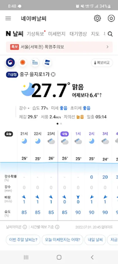 ‘Go to Naver Weather’ allows you to quickly check the weather with one touch.