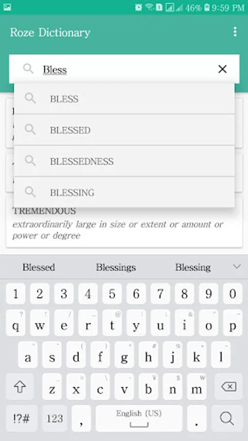Roze Dictionary is Smart and free English to English Dictionary which contains thousands of words with Meaning, Definitions. Synonyms, Antonyms and Examples. It provide fast search options with suggestions. It also provide options of Text to Speech Audio Pronunciations.