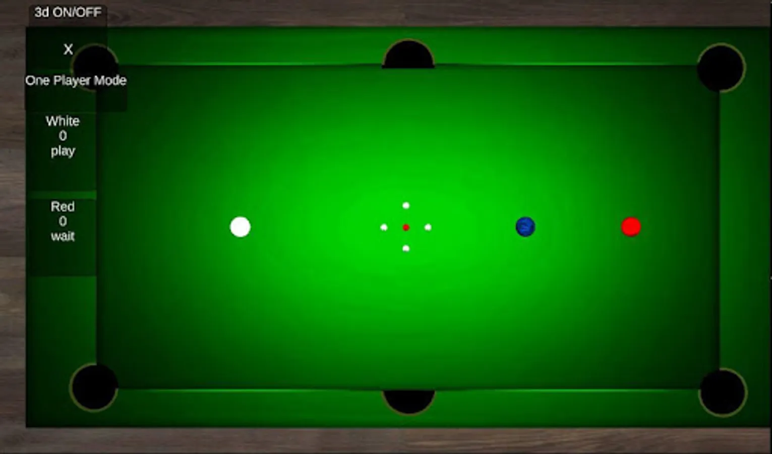 Pool5Pins is a pool game ispired by a mix of existing pool games of wich "carom" is the best known . The game scene is composed by a white ball, a red ball, a neutral ball blu, six holes and five pins. The pourose of the game is to hit the most pins that you can using the opponent's ball and wins the first player that arrives at 30 points. You can choose to play a single player match or a two player match, network matches are not available in this version.