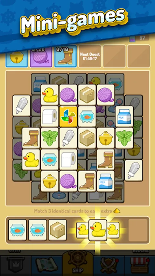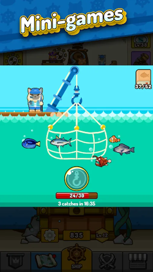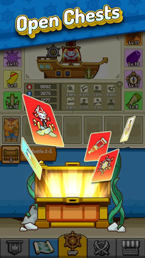Welcome aboard, new sailors! In this world, you will take on a thrilling adventure on the high seas with your fellow Meows. All you need to do is keeping on opening treasure chests and upgrading gears for your ship!