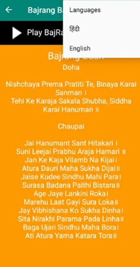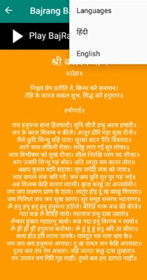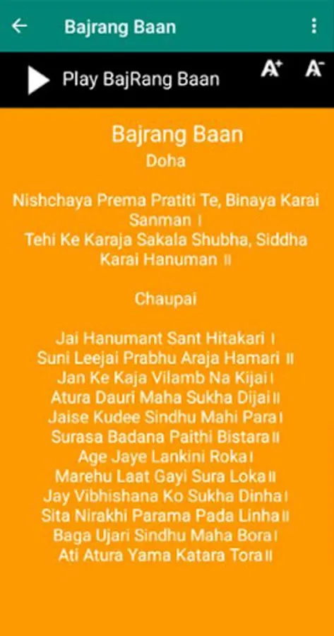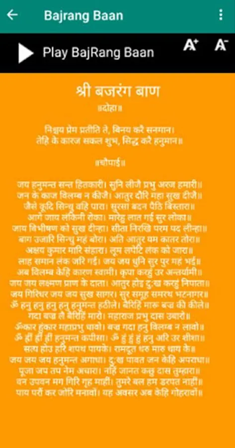 Bajrang Baan is the most popular devotional song dedicated to Lord Hanuman. This famous song of Lord Hanuman is recited on most occasions related to Lord Hanuman and it is similar to Hanuman Chalisa in composition. The literal meaning of the Bajrang Baan is the arrow of Bajrang Bali or Lord Hanuman.