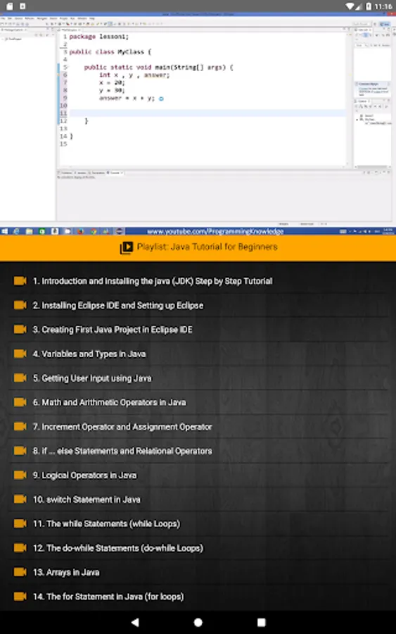 This application is designed to help Java learners or Java apprentice to learn ‘Core Java free in their android smartphones. It is designed as a complete reference for beginners to learn the Java language.