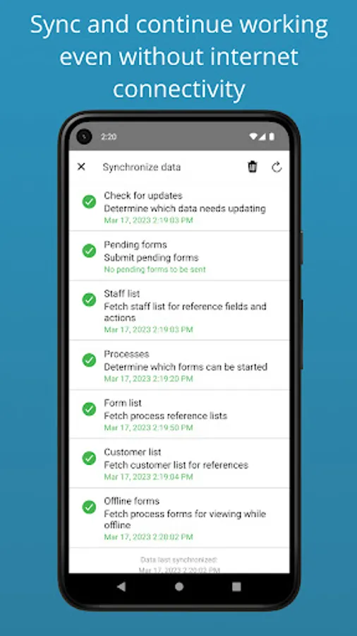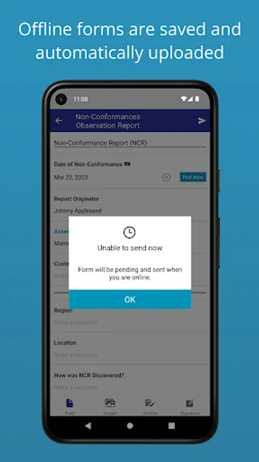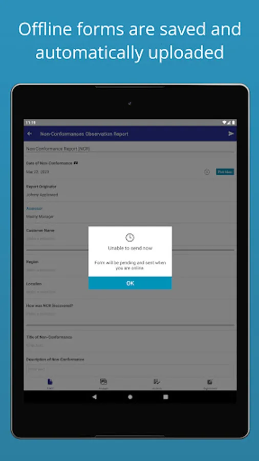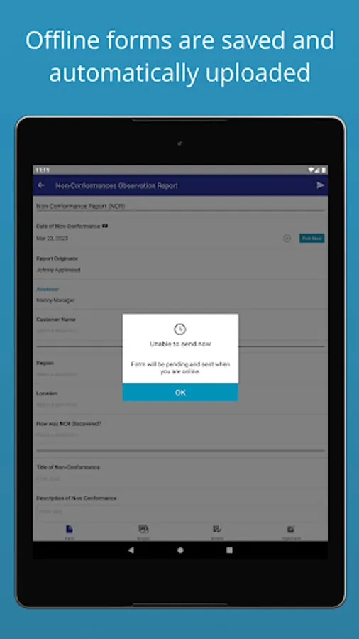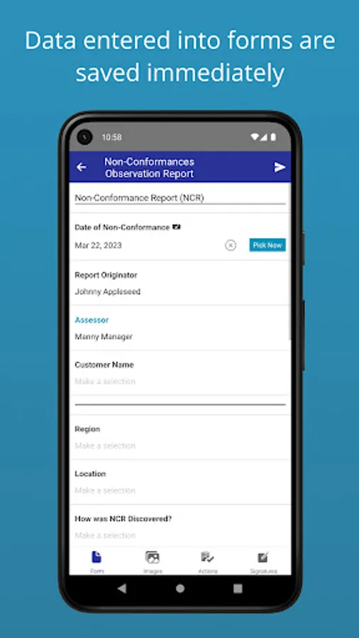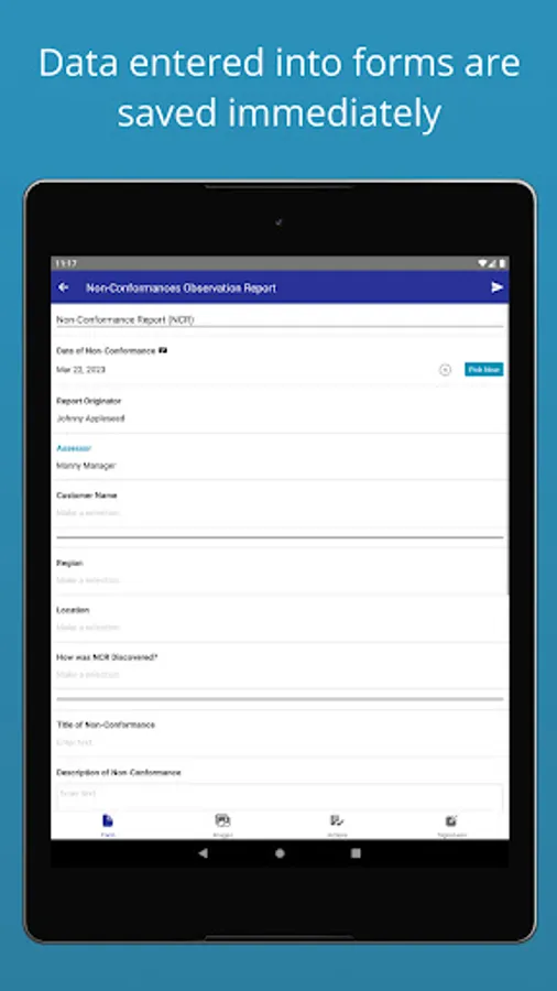When completing a form, the QuartzQMS app saves data automatically so users will never lose data. This functionality is ideal for extensive forms, such as audits, where users have multiple instances of data entry interaction with the app.