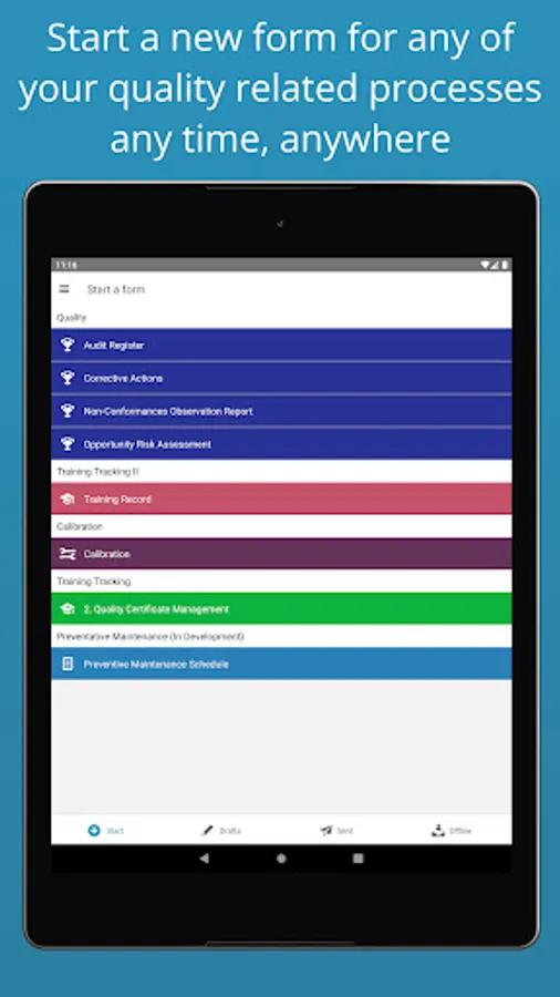 The Quartz Quality Management Software app was developed to provide QuartzQMS users access to their subscription's custom Non-Conformance Report, Risk Assessment, Preventative Maintenance, Change Orders and other Quality related processes in an offline environment.