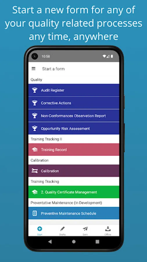 Offline mode is ideal for QuartzQMS users who require access to their custom Quality Management processes and to enter data into forms while working in areas where Internet isn't reliable.