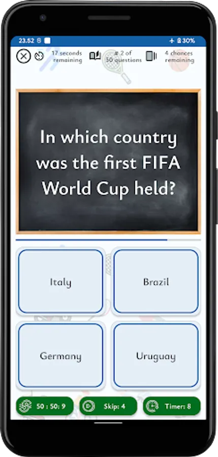 Improve your sports knowledge with hundreds of questions from the categories above. You can play Sport Quiz forever.