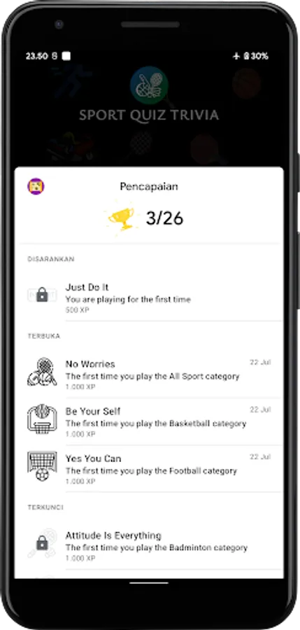 Sport Quiz is a trivia quiz game that contains questions about sports. This trivia game can add to our knowledge and insight.