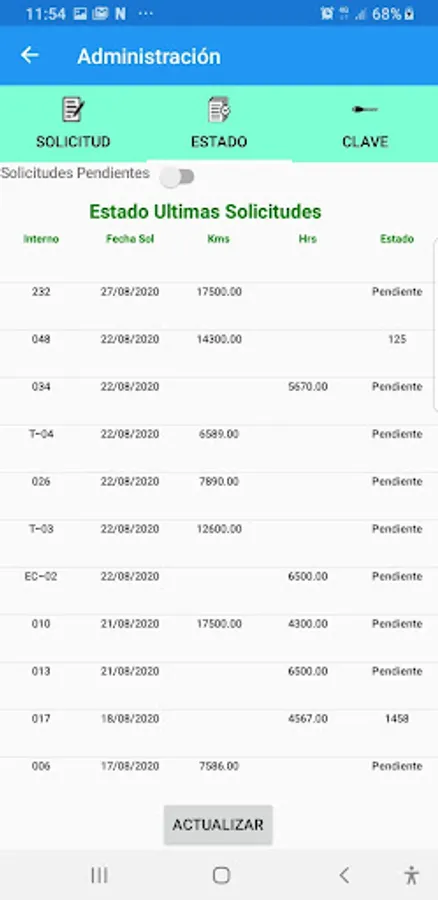 Requests are made to the Workshop for a vehicle, you can also check the status of these requests and change the user's access code, all through a simple tab window