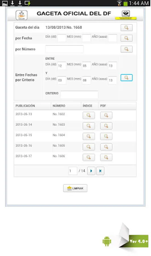 In your hands you have a great tool that offers various search options such as the publication of the day, or you can search by specific date, issue number or by criteria or concept.