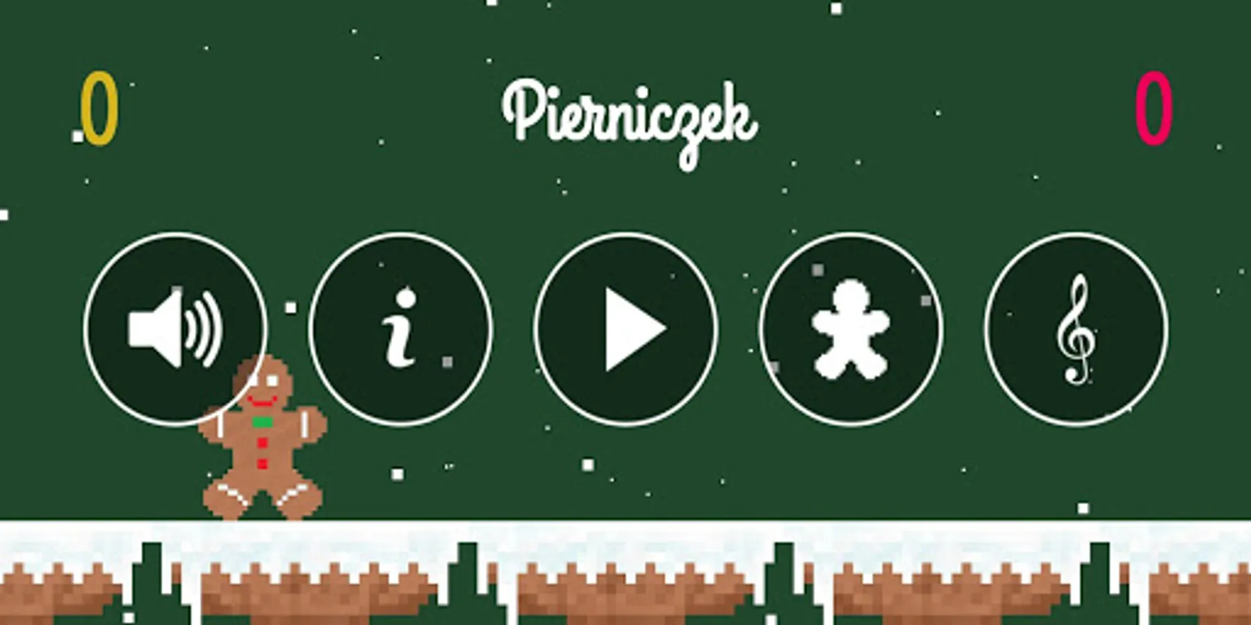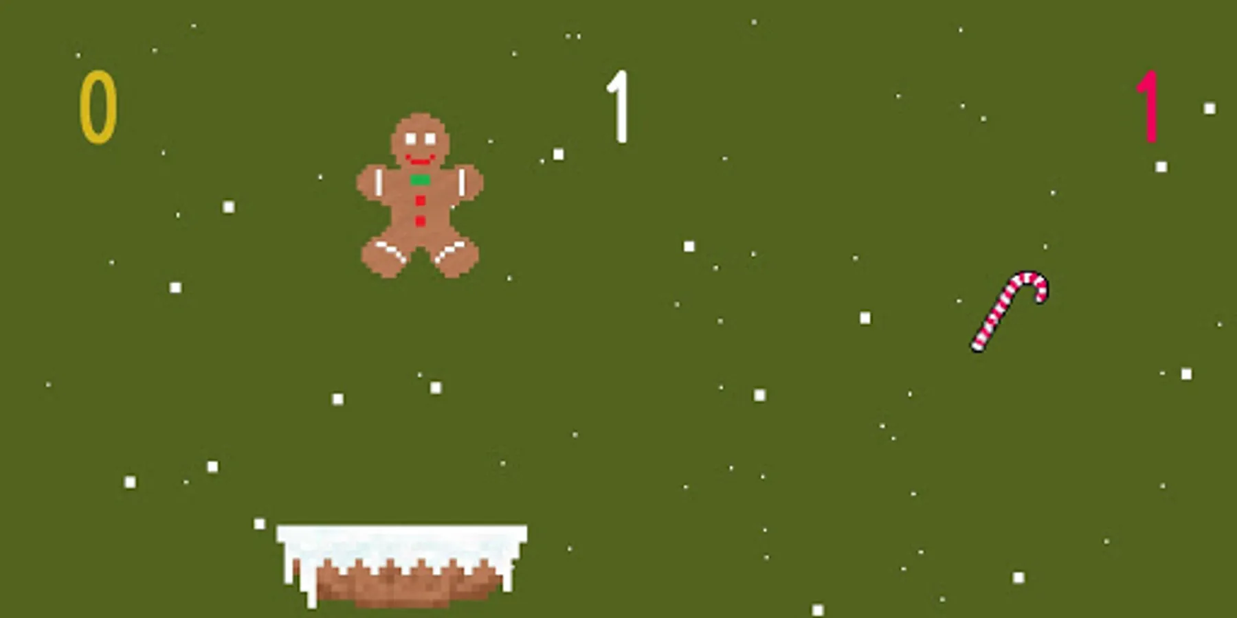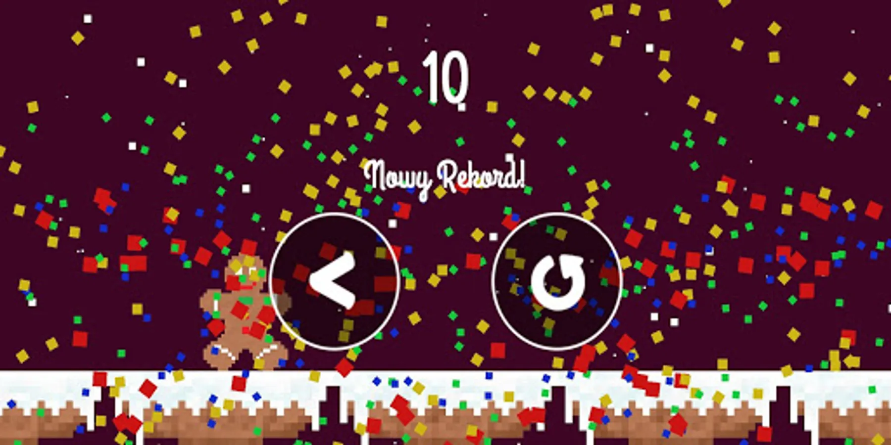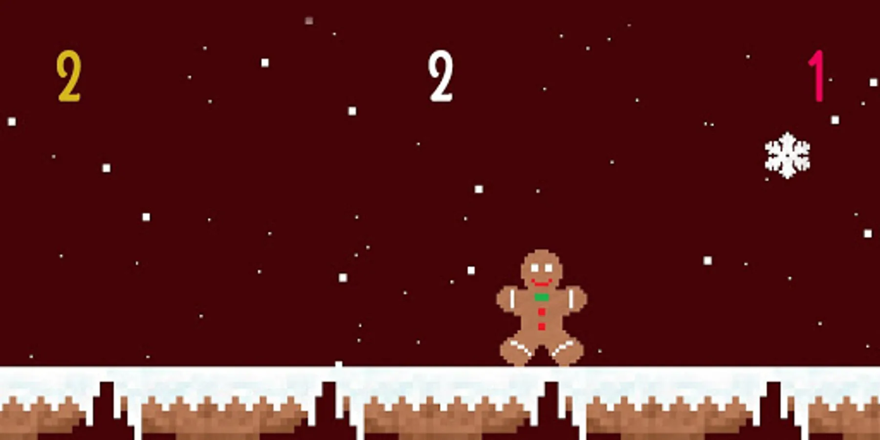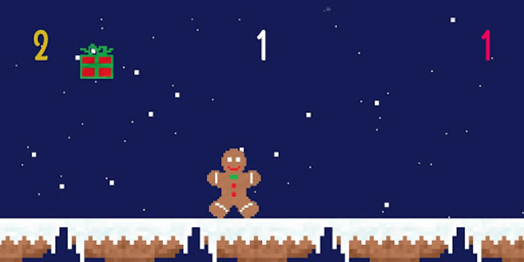 Run from snowflakes, jump, catch the gifts or change skins in christmas game Gingerbread.