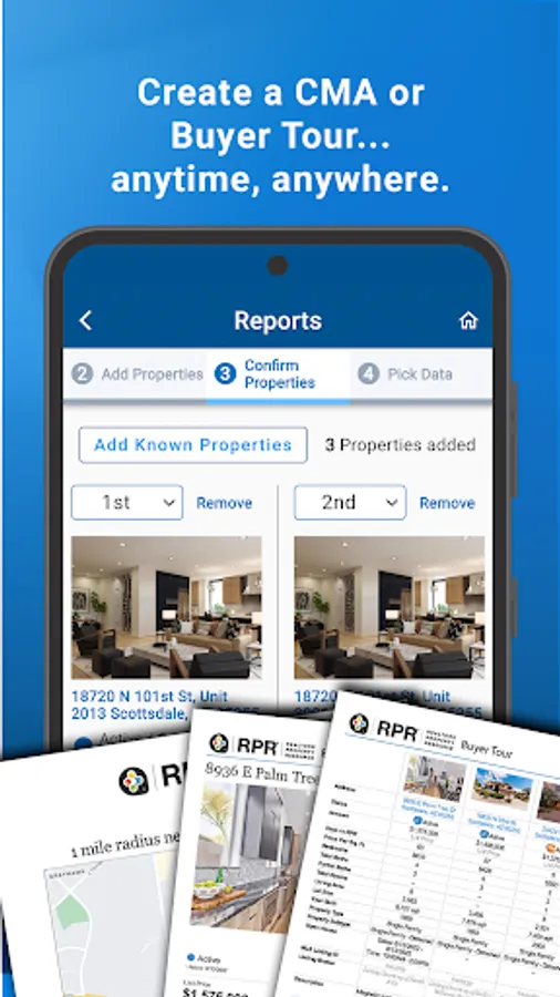 RPR Mobile™ is a property research app exclusively for REALTORS®. Easily search properties, create and send branded reports, and view local market statistics, anytime, anyplace.