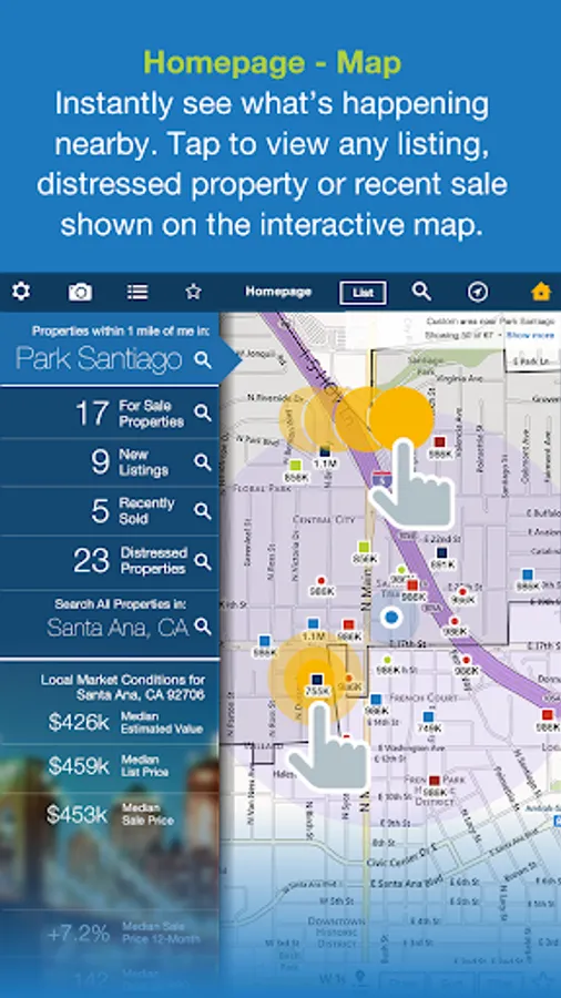 Use your location to view nearby listing and sales activity, or take a deeper dive into any property and view tax, mortgage, historical and distressed data, flood zones, school info, dynamic mapping and more.