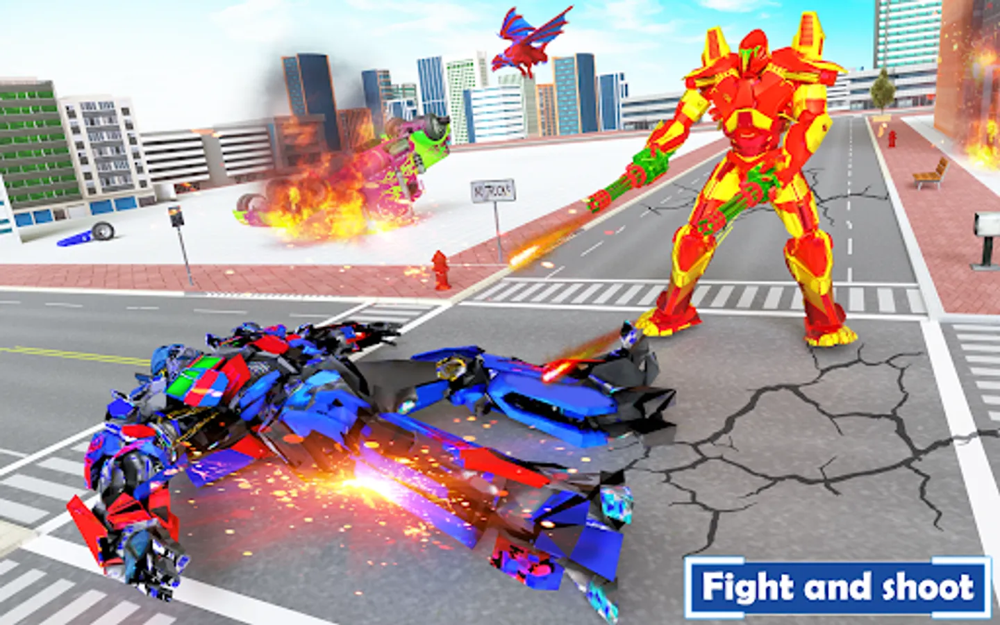 The city has made a special US army truck transform robot to help take back the city in flying robot game. Army truck robot are the last hope of humanity who can fight with the mech warrior to stop the evil plans of alien forces in flying dragon robot game. Become the brave hero of flying army robot shooting game and resist the invasion.