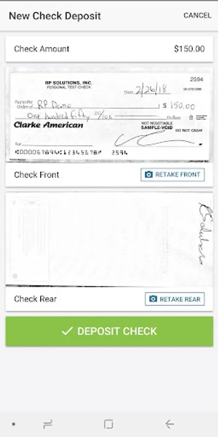 TPS RapidRDC is a mobile application used to capture and process remote deposit checks to approved business accounts. It is not a consumer-facing application for personal banking or check depositing. Use of TPS RapidRDC is reserved for companies and businesses who need to accept and capture remote payments through their employees/field agents for processing client payments. The capture is managed with the application while the deposits are processed through ICL and/or ACH files directly sent to the processing bank(s). No personal data is collected or kept by RP Solutions or within the application itself. Login credentials are granted only to users who have been authorized by the company/business purchasing TPS RapidRDC. Only employees/field agents associated with the client account(s) from RP Solutions will have access or login capability.