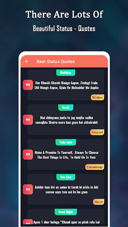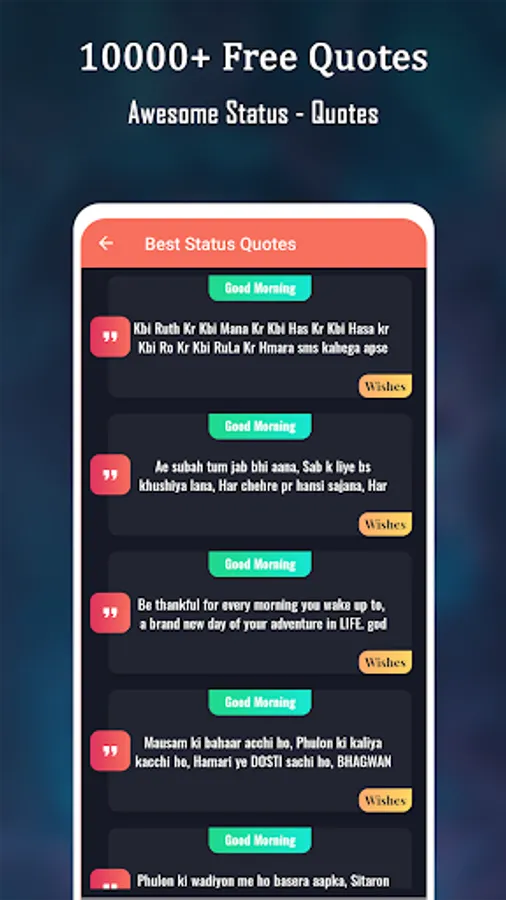 Top quotes and saying are lots of variety & categories in this app. if you are looking for a crazy, amazing, cool, funny status collection, your search ends in this status and quotes app