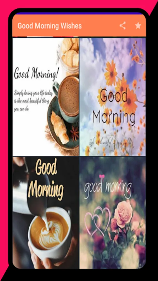 This app contains Good Morning Love Images, quotes, Flower wishes, coffee wishes, and inspiration wishes
