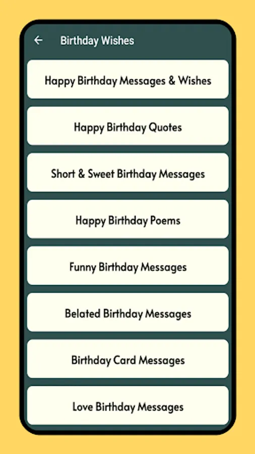 -Birthday, Baby, Congratulations, Get Well Soon, Good Luck, Graduation, Missing You, Sorry, Sympathy, Thank You, Thinking of You, and Valentine's Day poems and Messages.