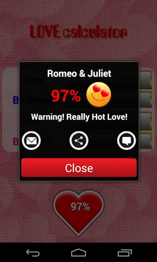 Use this application to know the loving affinity with your partner, together with the result you will see a sentence accompanied by a soundtrack.