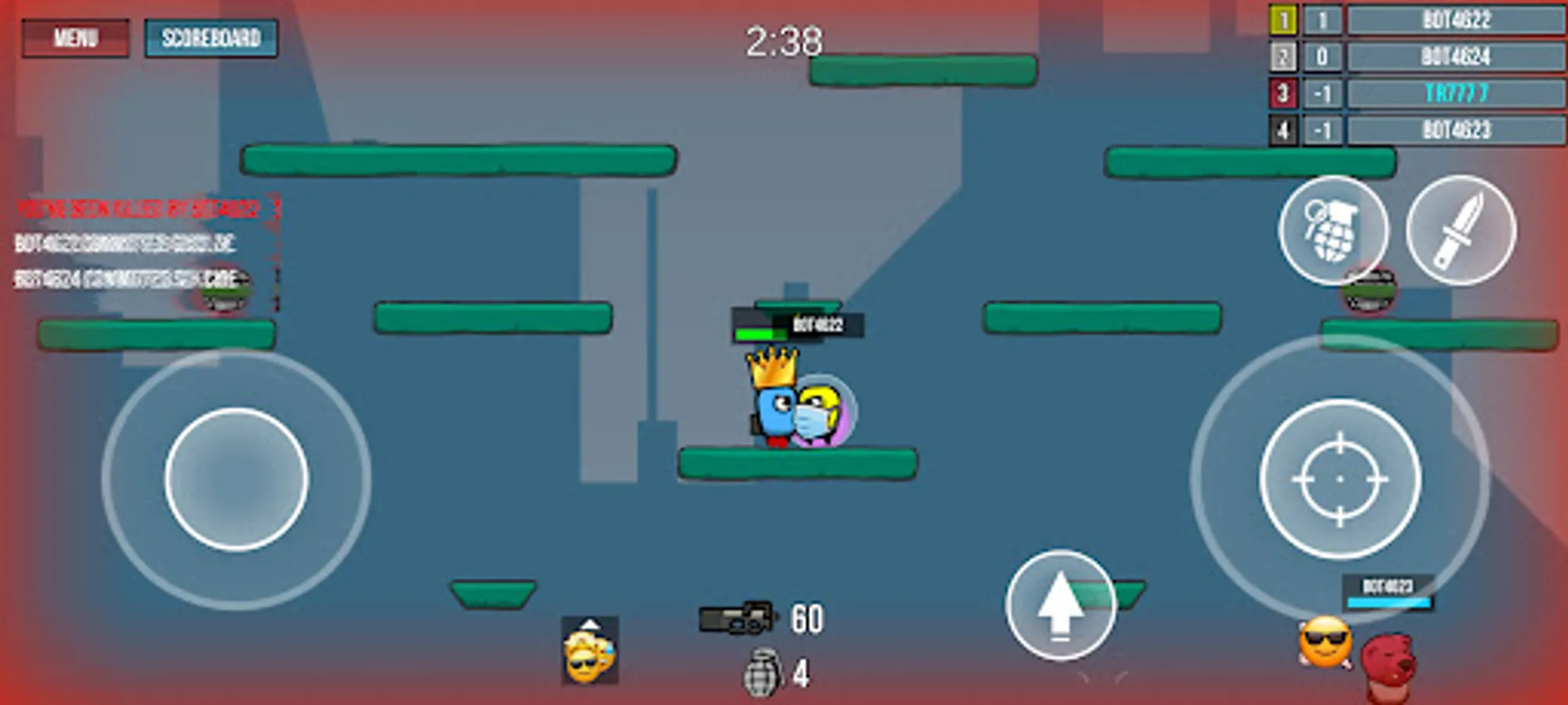 The goal of the game is to stay alive and win the battle with rivals, attack with different types of weapons, score more points to be the first in the leaderboard. Collect protection, weapons, grenades. Choose your hero and disguise in the inventory. You can create your own maps, watch the leaderboard, correspond in the chat. To play with a friend, click Play together.