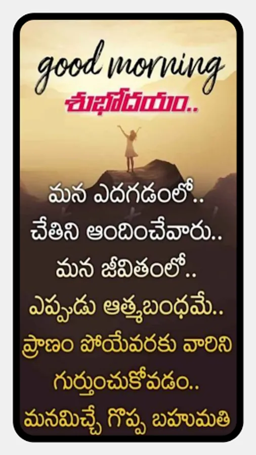 This app consists of an awesome collection of Motivational, Inspirational, and successful Good Morning and night Wishes in Telugu with nice background.