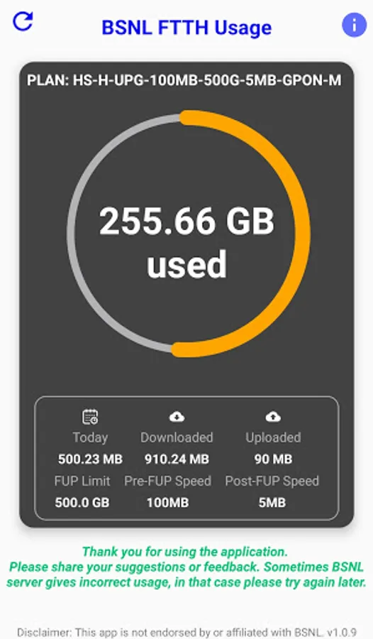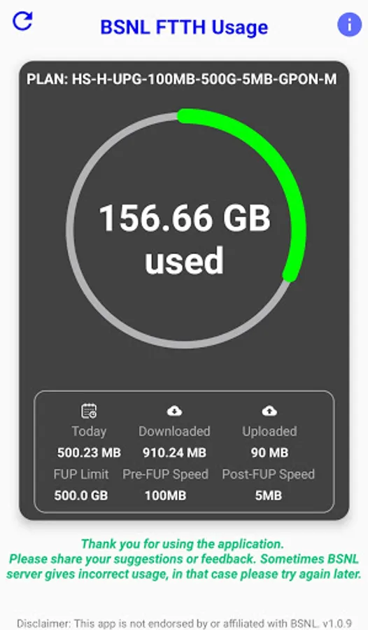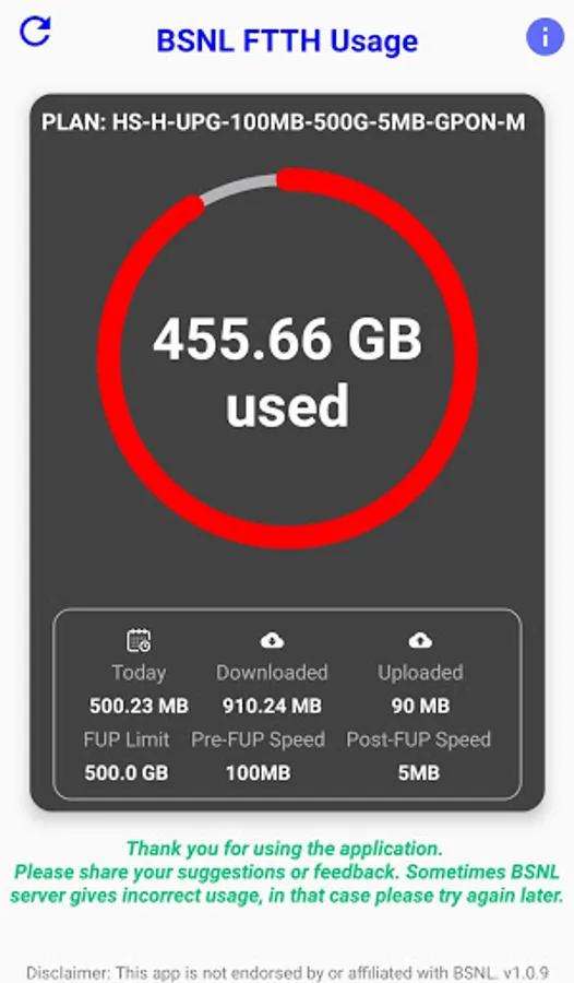 Check your data usage for your BSNL Fiber to Home (FTTH) connection. This works for some of the locations, so if you are not getting results then please share the feedback.
