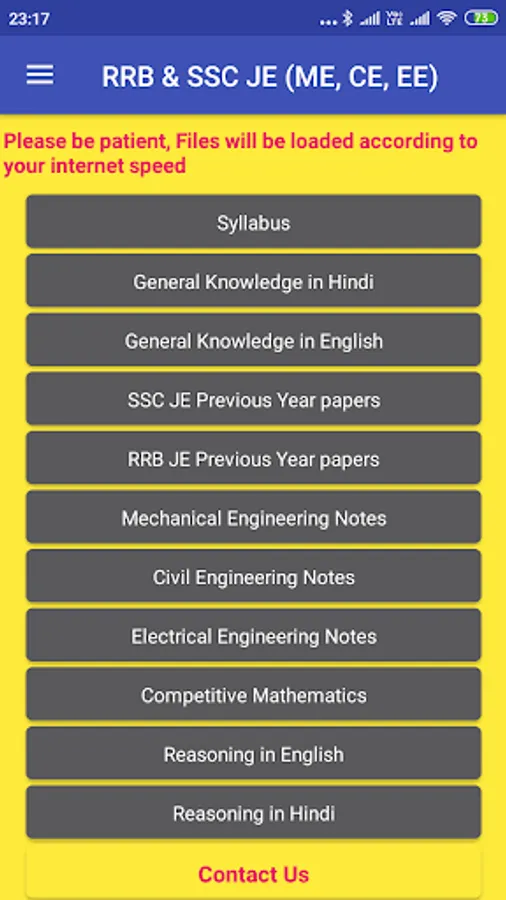 The app contents RRB JE and SSC JE syllabus, and previous year questions papers, notes related to common syllabi like Physics, Chemistry, Biology, Geography, History, Polity, Computer Knowledge etc… these notes are useful for all nontechnical papers,