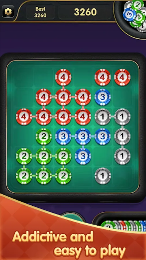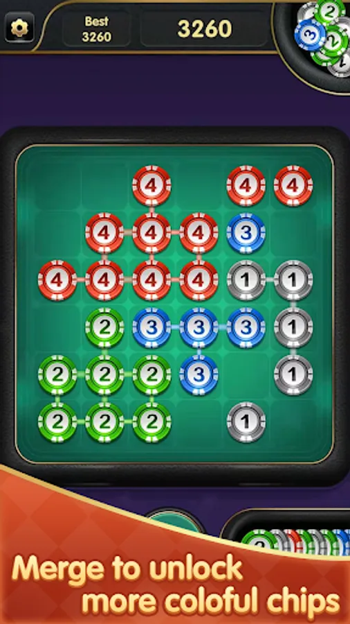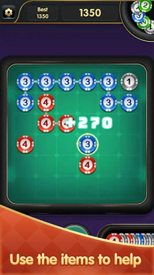 Combine the same chips in "Chip Master word" and enjoy the brain training exercise. Match 3 chips of the same color and number and enjoy hours of fun.