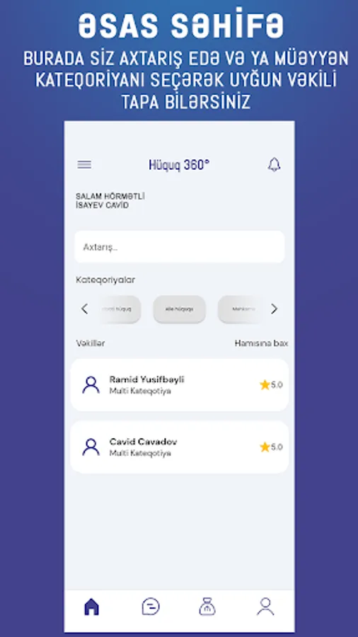 Through this application, users will be able to choose a lawyer from the relevant category according to their process. All you need to do is register. After the choice of lawyer is decided, the person can use the service in a simple manner by touching the appropriate call button.