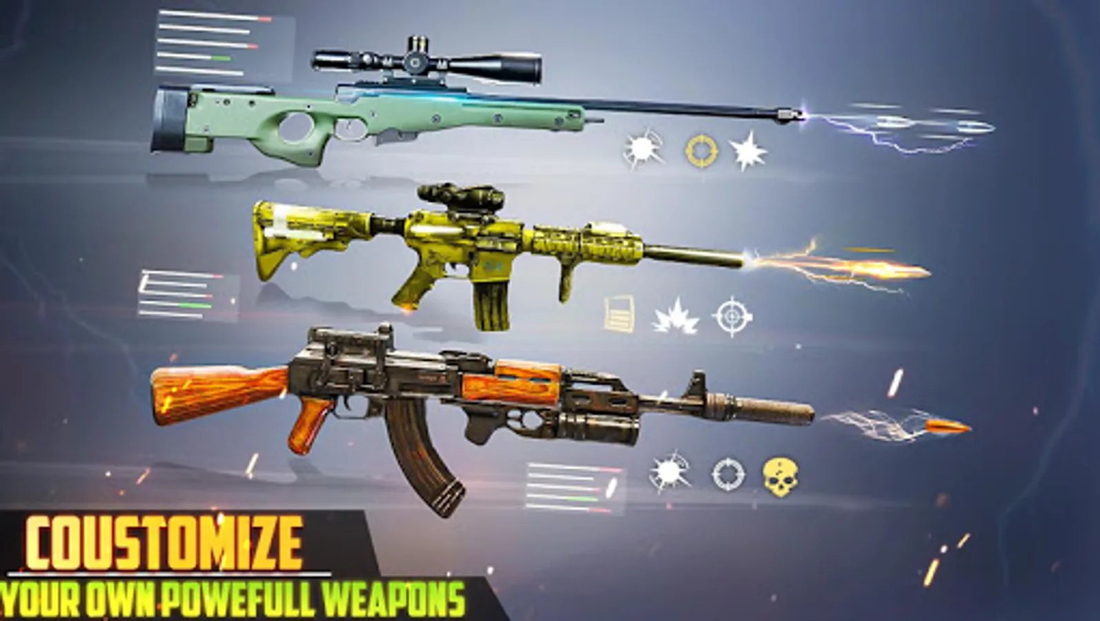 √Huge variety of modern guns like Desert Eagle, AK47, M4A1, AWP, GATLIN and so on.