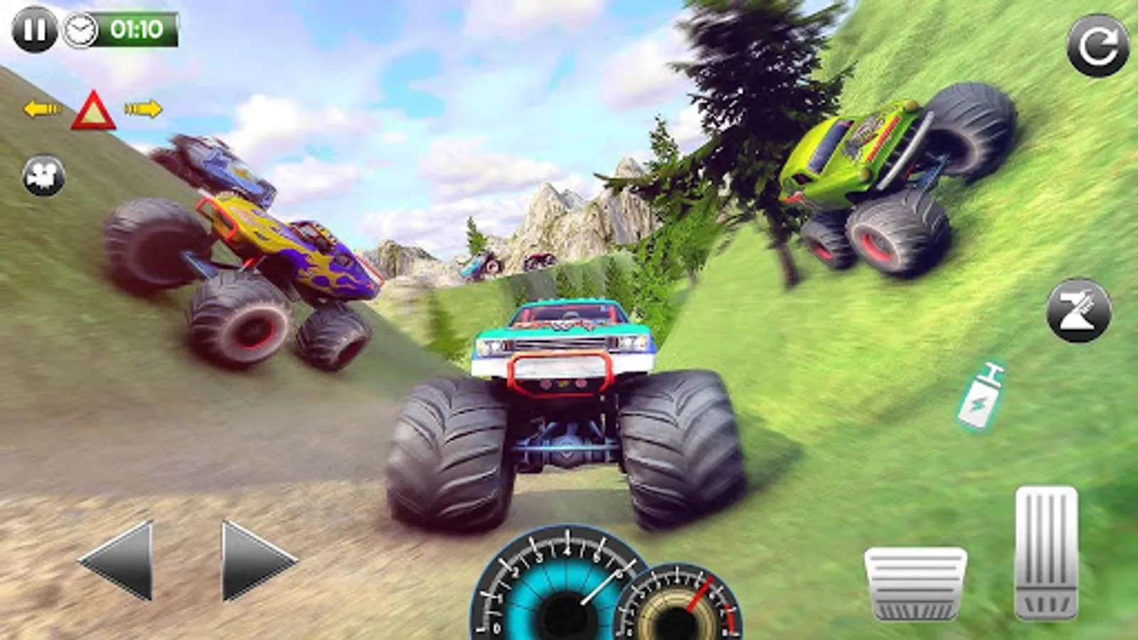 Welcome to the most thrilling offroad hill racing monster truck game. Play with a lot of trucks in this monster hill truck Game 2022. It is time to drive through the steep mountain and rocky hill tracks. Be careful on bumpy roads and mud roads while driving monster trucks in the new truck simulator game 2022.