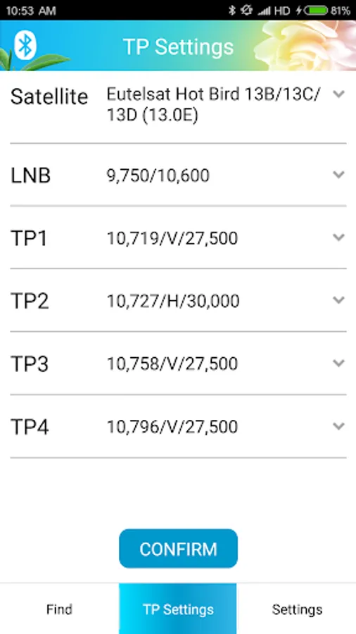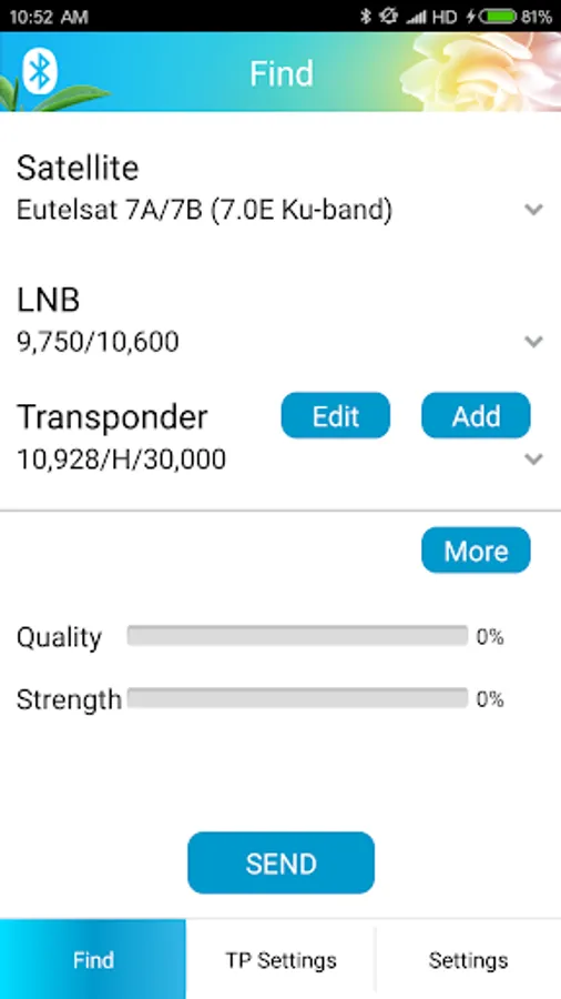 Relook Sat Finder APP also could transfer transponder parameters to the Bluetooth Sat Finder.