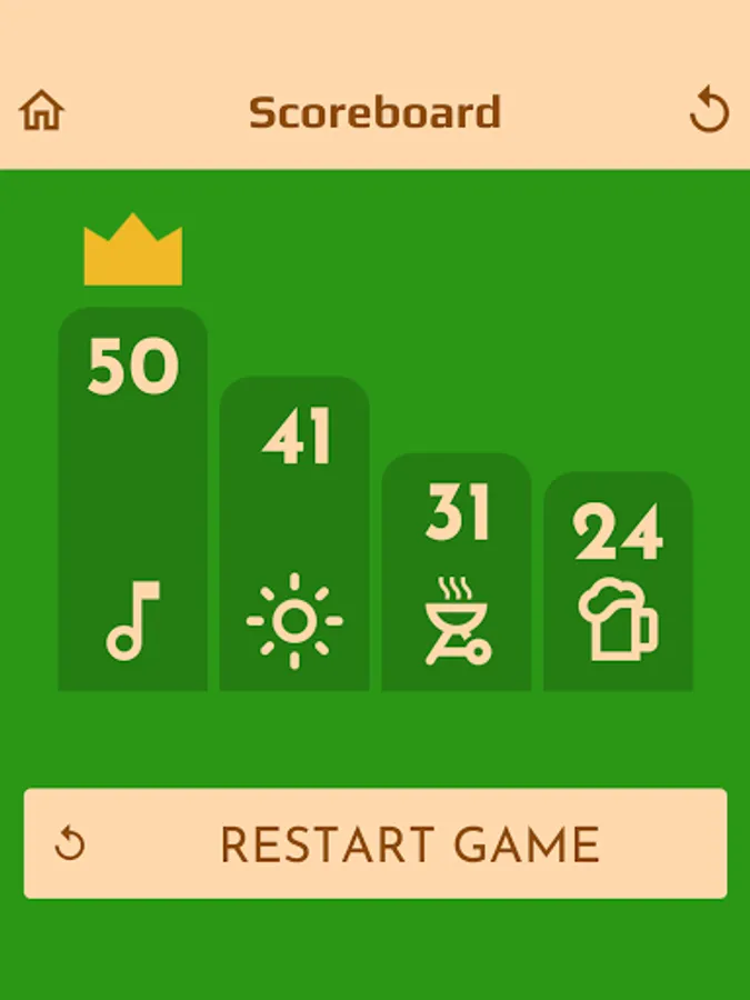 Wood Score supports your games by relieving you of point counting (especially when there are more than 2 teams) and also by adding a rule known to fans: the Zap! When you score the same as your opponents, they are zapped and fall to the lower tier: 0 or 25 points. Wood Score also offers to play up to 4 teams.