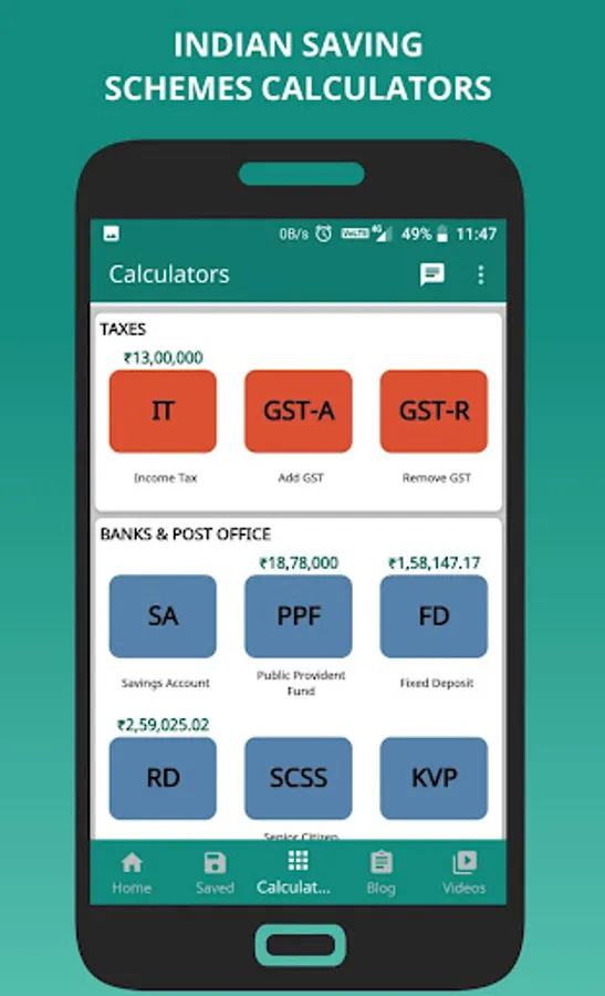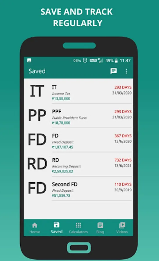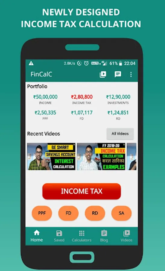 FinCalC Income Tax & Financial Calculators India is a FREE Financial Calculator App available for the people of India to help you in Financial Planning and tracking Income Tax Payable. FinCalC Income Tax & Financial Calculators calculates Income Tax and Interest Amounts on Public Provident Fund(PPF), Fixed Deposits(FD), Recurring Deposits(RD), Savings Accounts and many more to help in Financial Planning of people of India.